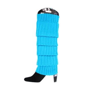Blue 80s Legwarmers Chunky Knit. These are a classic 80s staple. These legwarmers are the perfect accessory for your 80s workout costume. Pair with black clothing to make the colour really pop. Also available in purple, green, and hot pink.