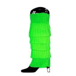 Green 80s Legwarmers Chunky Knit. These are a classic 80s staple. These legwarmers are the perfect accessory for your 80s workout costume. Pair with black clothing to make the colour really pop. Also available in purple, blue, and hot pink.