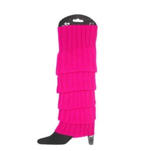 Hot Pink 80s Legwarmers Chunky Knit. These are a classic 80s staple. These legwarmers are the perfect accessory for your 80s workout costume. Pair with black clothing to make the colour really pop. Also available in blue, green, and purple.