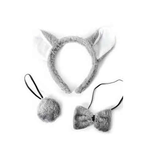 Koala 3pce set. This Australian animal kit includes the headband with ears, tail and bow tie. Pair with grey clothes, or grab one of our grey animal suits. Perfect for Book Week, school events and birthday parties.