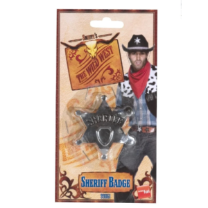 Sheriff star badge, perfect accessory for your next cowboy party. Just pair it with a check shirt, jeans, hat and bandana.