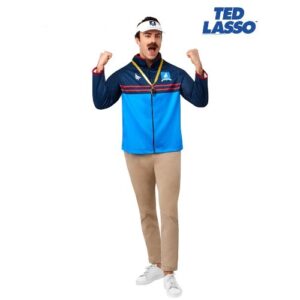 Ted Lasso – FOR HIRE. Become everyone’s favourite coach with this Ted Lasso hire costume. Hire includes jacket, visor and whistle. Use Ted for a TV, Hollywood, Sports, or around the world themed events. Finish the look with one of our moustaches (sold separately).