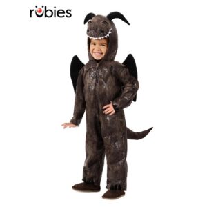 Toddler Dragon – Brown. This seriously cute toddler dragon costume is great for general play, or a child care dress up. Use for medieval, fairy tale, Disney, Book Week, or mythical themed events. Pack includes hooded jumpsuit with wings and tail. Shoes not included.