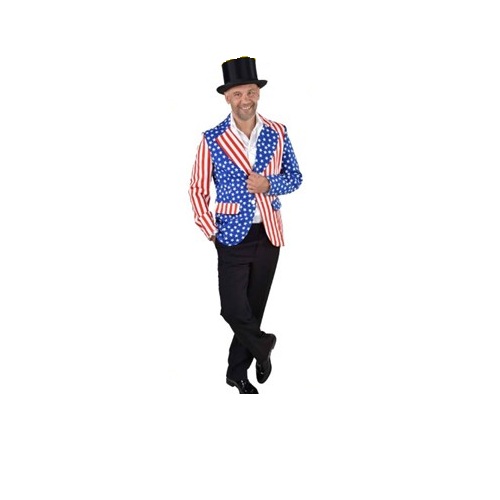 USA Suit Jacket. This stars and stripes jacket is ideal for showing your love of the USA. Use for an Independence Day, America, around the world, Uncle Sam, or formal themed event. Pack includes suit jacket only, all other items shown not included.